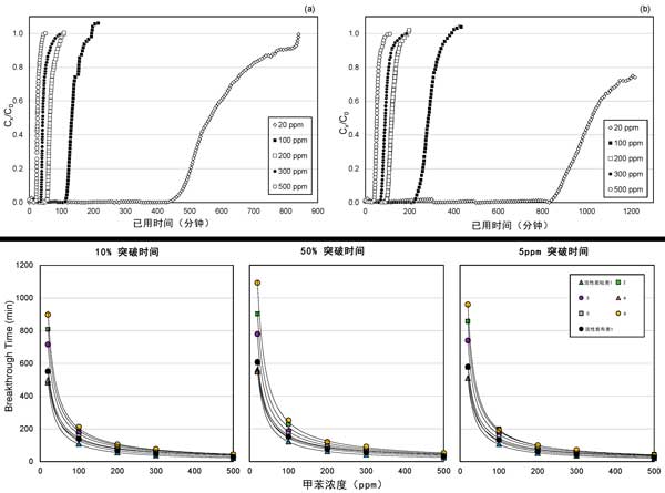 甲苯濃度對突破時間的影響