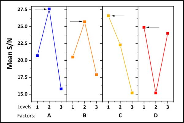 環(huán)己烷和苯在測(cè)試活性炭上的二元吸附,有相應(yīng)的穿透曲線;钚蕴縀4對(duì)二元混合物中的兩種碳?xì)浠衔镲@示出最高的吸附能力。盡管樣品E4的苯吸附容量較高,但其選擇性低于其他活性炭(E9>E5>E6>E3>E1>E8>E2>E4>E7)。所有活性炭都優(yōu)先吸附苯,但樣品E1、E4、E5和E8顯示出很高的苯吸附能力。填充床的小數(shù)容量比在單組分氣體吸附更大的二進(jìn)制吸附。當(dāng)使用低吸附物濃度時(shí)填充床的吸附效率增加。表明活性炭材料可以更容易、更有效地吸附傳質(zhì)區(qū)中的碳?xì)浠衔铩T诙旌衔锓蛛x中,對(duì)活性炭苯吸附能力影響最大的因素是:活化劑、浸漬比和物理活化時(shí)間。吸附劑E1、E4、E5、E6和E8顯示出很好的信噪比。圖3說明了在測(cè)試條件下制備活性炭的平均S/N比。總體而言,制備具有高吸附能力的活性炭以從二元混合物中分離苯的合適條件已驗(yàn)證。