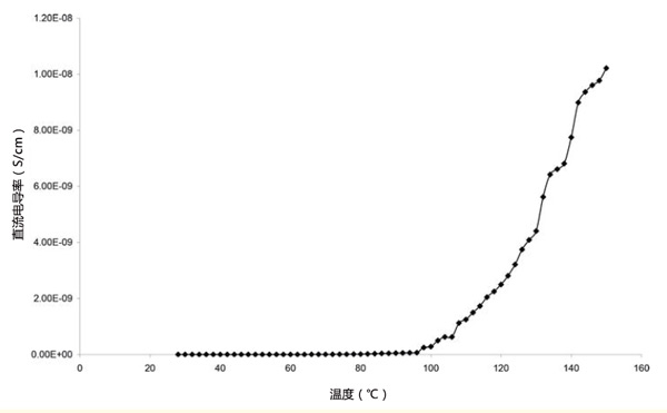 活性炭環(huán)氧梯度復(fù)合材料在距外圍不同距離處的密度。這表明與外圍距離的增加會(huì)降低復(fù)合材料的密度。這是由于活性炭含量的減少。圖1顯示了活性炭粉末填充環(huán)氧樹脂樣品1的直流電導(dǎo)率隨溫度的變化。在該圖中,直流電導(dǎo)率在108℃時(shí)增加,然后在112℃時(shí)變得恒定,直到128℃,然后突然增加直流電導(dǎo)率在128℃后升高,最高可達(dá)150℃。