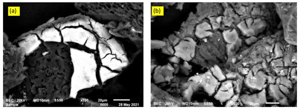 圖1:使用鐵電極(a)和鋁電極(b)的電凝工藝,活性炭顆粒的SEM表征。