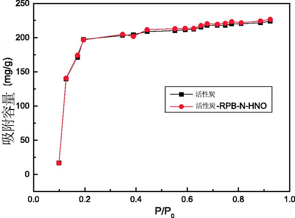 活性炭在高重力環(huán)境中的熱化合物改性。將100g活性炭作為填料層,并且以900r/min的速度操作300分鐘,其中99%氮?dú)鈴娜肟诙丝谕ㄟ^。得到的活性炭表示為活性炭-RPB-N。原始活性炭和活性炭-RPB-N用1mol·L-1HNO 3在70攝氏度,流速40L·min-1,轉(zhuǎn)速36.3Hz下進(jìn)行改性。在該處理之后,在用去離子水沖洗后,將兩個樣品在真空烘箱中在110攝氏度下干燥24小時,并分別表示為活性炭-RPB-HNO和活性炭-RPB-N-HNO。