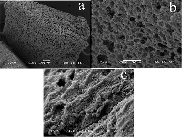 我們通過活性炭的SEM可以看到表面的多孔結(jié)構(gòu)(圖1a)。此外,在用酸浸泡后,在活性炭表面可以觀察到大量的多孔和松散結(jié)構(gòu)(圖1b和c)。由于活性炭具有較大的表面積,多孔結(jié)構(gòu)和高活性表面,因此主要用于吸附污染物。因此,活性炭的強吸附能力被用于磺胺嘧啶吸附實驗。