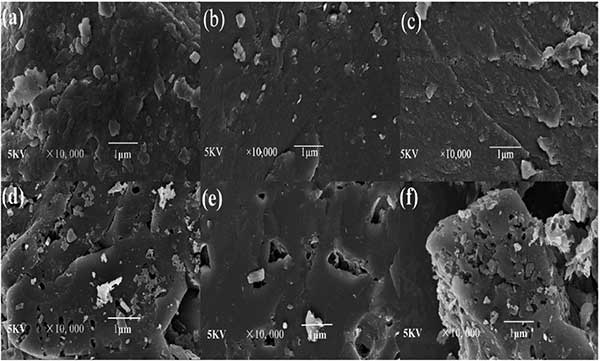 從表面形態(tài)分析不同煤和活性炭的SEM圖像如圖2所示。它表明三種活性炭的表面相對(duì)光滑,沒有任何毛孔,除了偶爾的裂縫。在活化后,三個(gè)活性炭的外表面都顯示出不規(guī)則的孔;钚蕴康谋砻嫦鄬(duì)粗糙并且表現(xiàn)出更多的孔。而具有低灰分和揮發(fā)性物質(zhì)含量的炭2顯示出相當(dāng)光滑的表面。可能是在氣化過程中形成的金屬鉀可以擴(kuò)散到碳基質(zhì)的內(nèi)部結(jié)構(gòu)中,從而擴(kuò)大現(xiàn)有的孔隙并產(chǎn)生新的孔隙。