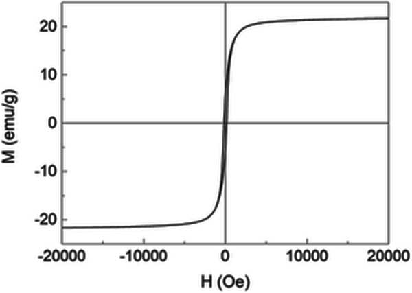 活性炭復(fù)合纖維材料在室溫下-20000至20000 Oe范圍內(nèi)的磁滯回線在圖3顯示,其形狀是典型的S曲線,對應(yīng)于超順磁行為。包括飽和磁化強度Ms,磁矯頑力HC和剩余磁化強度Mr的磁特性。活性炭復(fù)合材料的Ms低于塊狀Fe3 O4,這可以通過活性炭載入Fe3O4納米粒子來解釋,這與發(fā)現(xiàn)的結(jié)果非常一致。