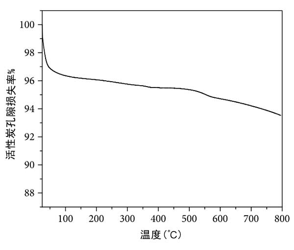 熱重分析:通過使用TGA分析研究了合成催化劑活性炭的熱穩(wěn)定性。發(fā)現(xiàn)催化劑是穩(wěn)定的,并且在450℃的溫度下記錄了約2%的重量損失(圖3),并且可以清楚地看出浸漬降低了碳含量并因此導致孔隙的減少。