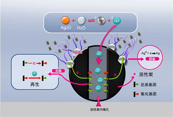 圖3:通過將載金屬活性炭浸入微溶的氧化銀上清液中來生長銀納米帶的原電池機(jī)制的示意圖。