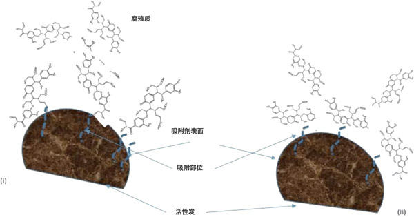 廢水中不同類型的腐殖質(zhì)會(huì)改變化學(xué)和物理特性,因此,它們與不同類型的吸附劑相反地相互作用。關(guān)于吸附劑的孔隙率,活性炭主要是微孔的,具有非常大的表面積。β-FeOOH的情況尚不清楚,因?yàn)椴煌姆椒ńo出的結(jié)果不同。但是,鐵化合物上有可能存在微孔。與活性炭相比,可用于AAFS和β-FeOOH的吸附面積小。但是,被吸附物的大小可能使其無法穿透微孔,因此限制了對(duì)活性炭的吸附,但是活性炭的孔隙率是可控的所以能解決這方面問題。