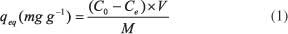 由各溶液吸附的亞甲基藍的量由式1計算: