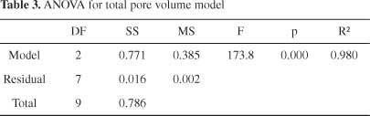 這個方程適用于微孔體積預(yù)測,用包含文獻中的數(shù)據(jù)和由我們獲得的數(shù)據(jù)的測試樣品進行評估。共測試了36個樣本。圖形比較(圖4)表明該模型具有良好的預(yù)測能力。該試驗樣品組的平均絕對誤差為0.05cm 3 g -1,平均相對誤差為16.4%。表2給出了模型的統(tǒng)計參數(shù)。