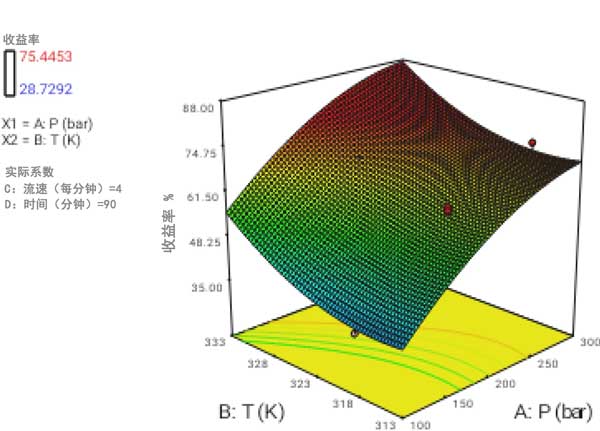 圖2:溫度和壓力對(duì)產(chǎn)量影響的3D圖形表面。