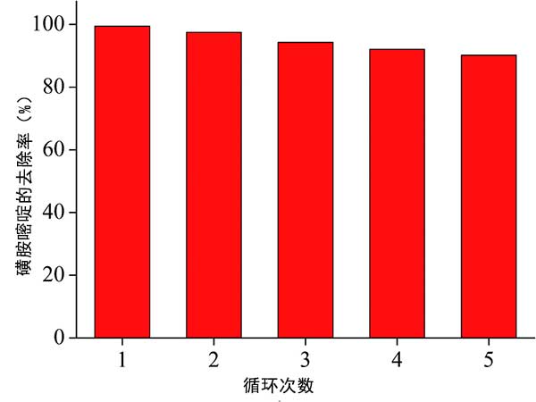 圖3:乙酸溶液用于去除磺胺嘧啶的可重復(fù)使用性。