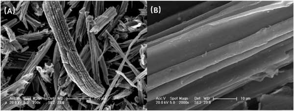 原材料用去離子水沖洗并干燥。然后在破碎機中破碎。重復(fù)破碎后,將破碎的原材料堆通過50和100目篩。將篩過的原材料粉末在氮氣氣氛下在不同溫度(300.0 °C至1000.0 °C)下煅燒。加熱速度為5.0 ℃ min -1,目標(biāo)溫度維持 180min。溫度上升后;然后將樣品自然冷卻至室溫。將烘干的活性炭浸入10%的鹽酸中12 h,用水洗滌3次,并在100.0 °C下干燥6 h制成。研發(fā)的活性炭與商業(yè)活性炭相比,具有更高的表面積和孔體積。圖1 顯示了活性炭的掃描電子顯微照片。由于高溫煅燒,活性炭具有不規(guī)則的棒狀結(jié)構(gòu),在其表面上具有皺紋,這提供了較大的表面積并增加了活性炭表面的吸附位置。