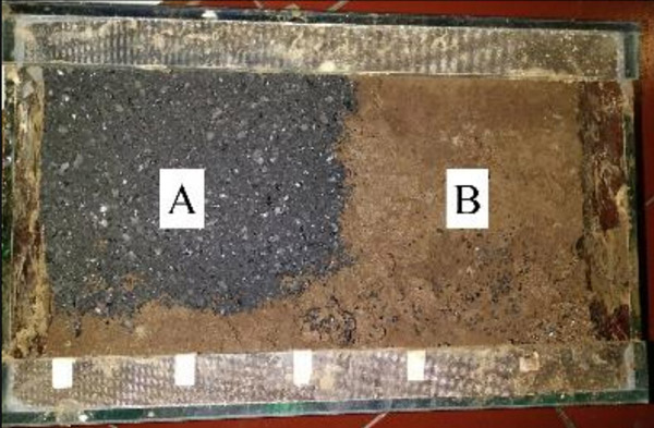 這項研究是在小型土壤上進行的,然后將其注入含有重金屬的礦山廢料中。使用27.5厘米x10厘米x20厘米的水族箱制作土壤模型,每5厘米要釘一次。該釘塞提供了空間,并使重金屬廢物更容易吸收到土壤中。每天注入多達5毫升的重金屬廢物,直到其積累多達200毫升。然后將土壤模型分為兩個區(qū)域:區(qū)域A和區(qū)域B。區(qū)域A的表層土壤被施加了活性炭,而區(qū)域B被留下(圖2和圖3)。每天都用蒸餾水稀釋微型土壤,以保持土壤濕度。