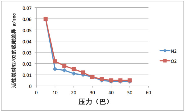 圖3:活性炭低溫吸附N2和O2的模擬測(cè)試。