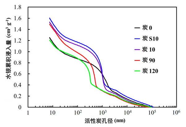 通過在不同研磨時間和不同類型的氧化鋯球下進行行星式球磨來進行粉碎。X射線衍射和拉曼光譜表明,在球磨過程中幾乎不發(fā)生活性炭的結(jié)構(gòu)變化。盡管炭90和炭120之間的差異很小,但炭120的比表面積比炭90低得多?讖椒植挤治鲎C實,在球磨過程中,活性炭中的孔改變了。直到90分鐘的研磨時間,粉碎和孔隙率維持之間的權(quán)衡是顯而易見的。但是,這種關(guān)系對于更長的銑削時間(120分鐘)無效。在目前的球磨機理下,顆粒的粉碎變得飽和,而孔的變性隨后隨著磨削時間而進行。