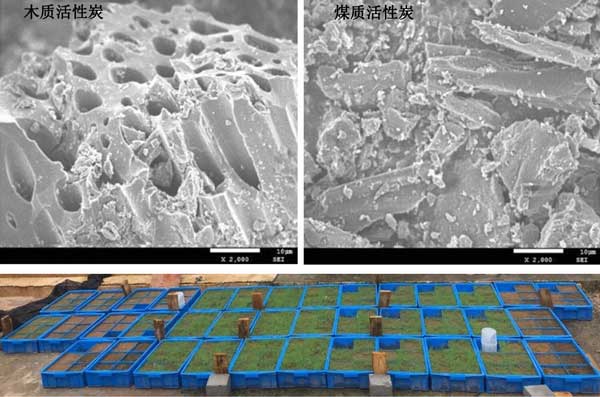 圖1:兩種活性炭的SEM圖像和實(shí)驗(yàn)中的播種機(jī)安排。